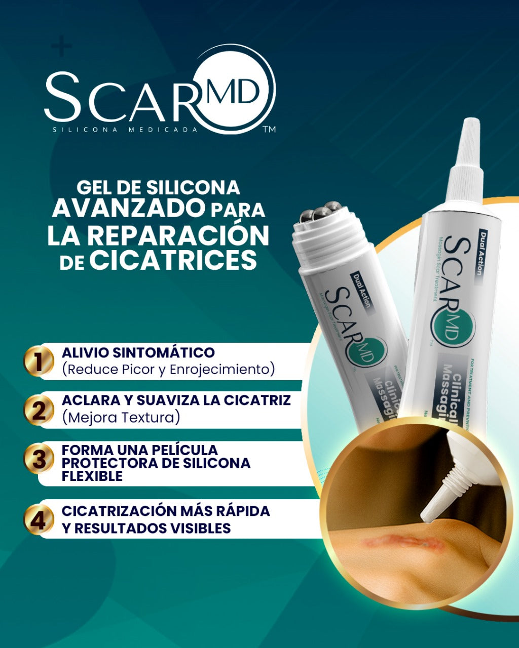 ScarMD incorpora DermaClear-X™, un complejo dermatológico avanzado inspirado en investigaciones de regeneración cutánea. Este ingrediente exclusivo combina péptidos bioactivos y extractos botánicos de alta pureza que estimulan el proceso natural de renovación de la piel, ayudando a suavizar y difuminar cicatrices en menos tiempo que los geles tradicionales.